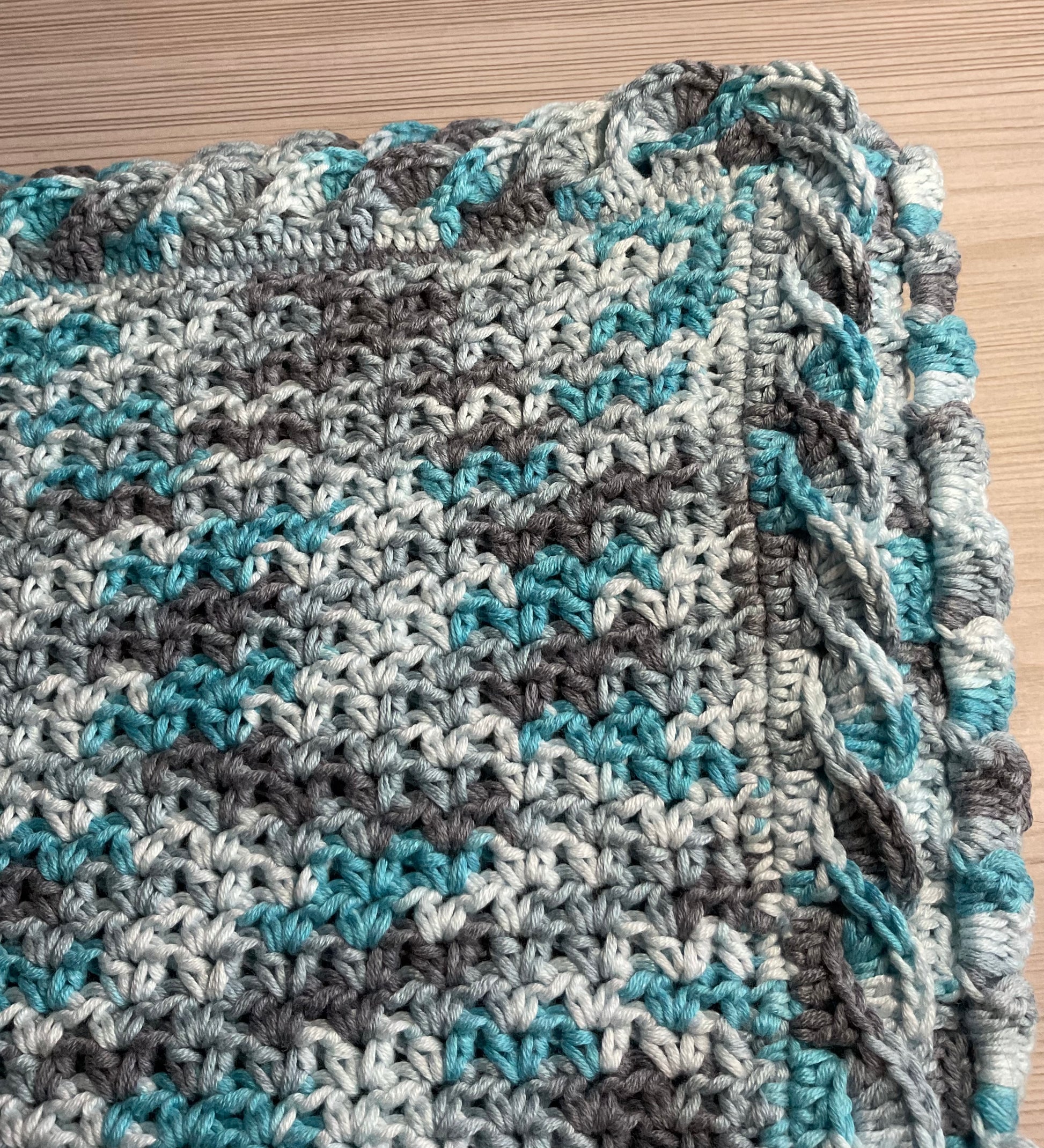 Pretty shades of blue & gray. Machine washable & dryable.