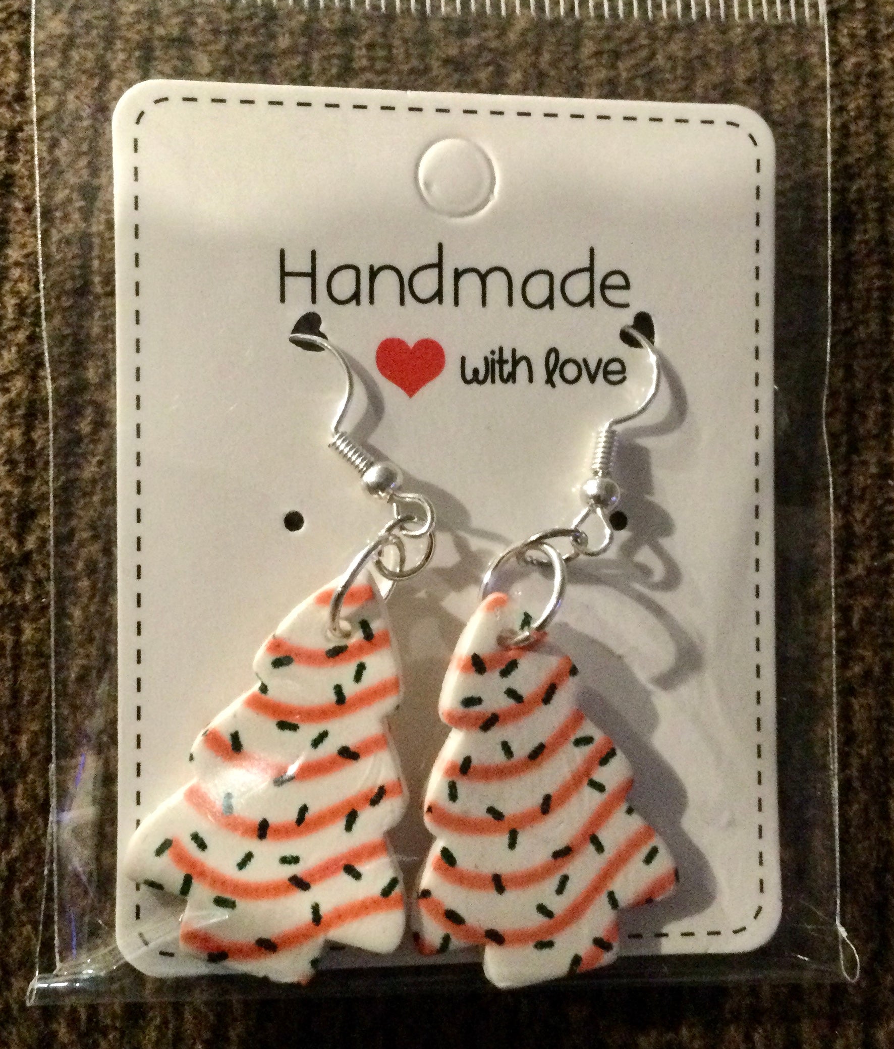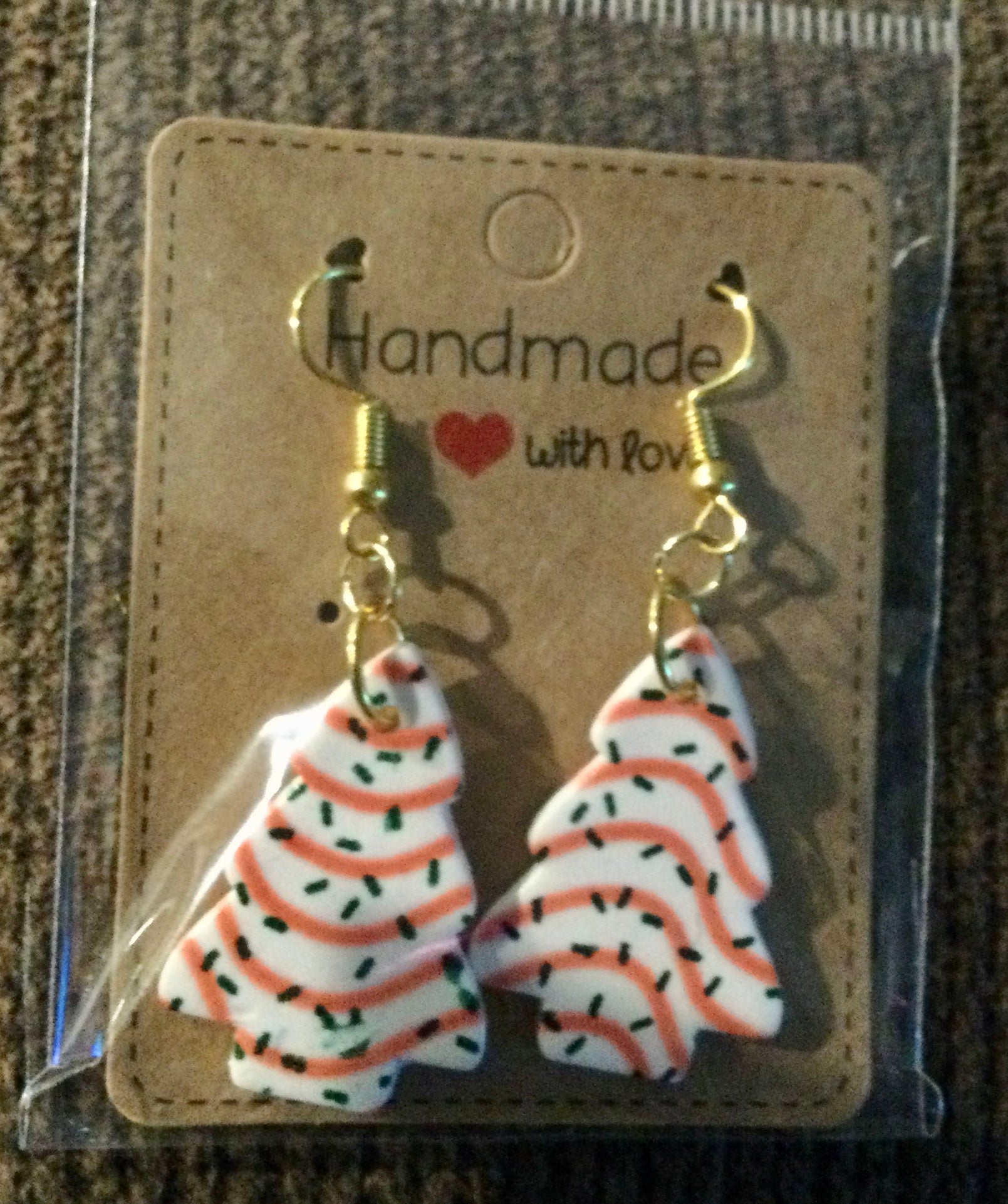 Adorable handmade clay snack-cake earrings. Silver or Gold fish-hook pierced, nickel free